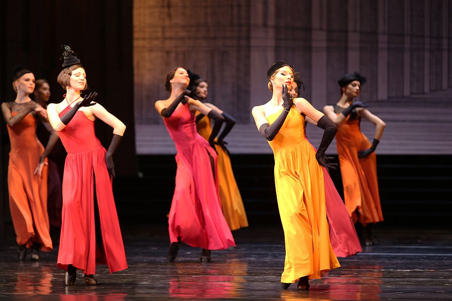 К счастью, Ратманский — москвич (во всяком случае, по духу и школе) и космополит. В его иронии над балетным отечеством (академическим каноном, классическим танцем) нет бессильного и яростного бунта, а есть сентиментальная нежность — качество, которое можно обеспечить только географической удаленностью. К счастью, Ратманский не петербуржец, поэтому его игра сохраняет некий антропоморфный масштаб: да, эти дома — культурные знаки, но лишь потому, что в них жили эти люди. Достаточно абстрактной категории (стесненного) пространства «Золушки» он придает черты зощенковской коммуналки. Отец, мачеха, сестры, Золушка не выглядят семьей, потому что они — соседи. И мачеха (Юлия Махалина) в морковно-рыжем коротком паричке и цветастом халате реализует многажды опробованный в кино тип замотанной, но хорохорящейся «женщины трудной судьбы». Бал выглядит танцами в довоенном московском «Национале», а принц, скинув смокинг, оказывается в белых летних брюках и облегающей фуфайке-трико, умыто-молодцеватый, как советский физкультурник на параде. Ведь «Золушка» и в самом деле была начата Прокофьевым до войны.