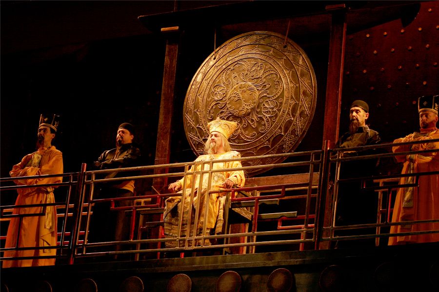 Справедливости ради — сам спектакль причин для раздражения не давал. «Турандот» — вполне красивый, стильный театральный вариант последней оперы Пуччини. Не скажу, что французские постановщики — режиссер Шарль Рубо, сценограф Изабель Парсьо-Пьери и художник по костюмам Катя Дениз Дюфло предлагали что-то нетрадиционное, стремились разыграть собственный сверхсюжет и действовали с позиций сильной авторской воли. Нет. Они уважительно следовали за музыкой, строя статичные мизансцены, и давали возможность насладиться знаменитыми пуччиниевскими мелодиями сполна, без отвлечений на сценические эффекты.