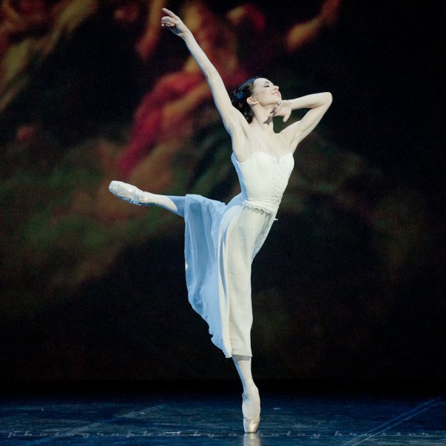Когда смотришь «Средний дуэт» в исполнении Светланы Захаровой, как-то особенно отчетливо понимаешь, откуда у него растут ноги (имею в виду постановку). А «растут» они из хореографии У. Форсайта, с которой у Ратманского много общего. Тут же вспоминаются «говорящие» стопы и сверхотточенные движения Сильви Гийем из хорошо у нас известного форсайтовского номера «In the Middle...» Захаровой ближе прямая передача хореографического текста, чем нюансы подтекста, которые здесь, несомненно, имеются. Пара Жанна Аюпова и Ислом Баймурадов, танцевавшая номер во второй вечер, осталась в пределах привычной петербургской «классической корректности».
