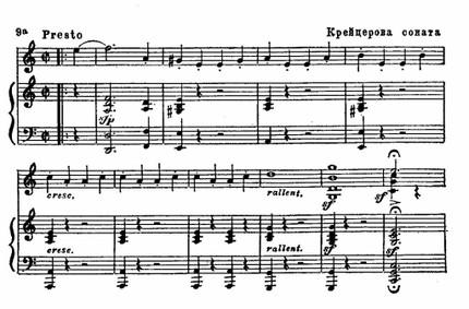 Резкие, тревожные интонации, построенные на повторяющемся стаккатном звуке, придают острую взволнованность и драматизм многим бетховенским темам: