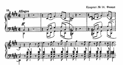 По существу же весь квартет образует грандиозное произведение с единым сквозным развитием, где ни одна часть не завершается, а непосредственно сливается с началом следующей. Идею этого произведения можно охарактеризовать как непрерывные психологические колебания между размышлением и действием, которые, наконец, разрешаются активным жизнеутверждением.