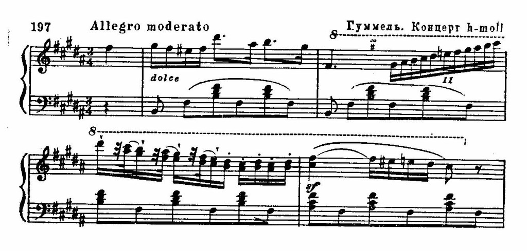 В 1828 году Гуммель, один из крупнейших пианистов своего поколения, получивший в свое время прозвище «Наполеона фортепиано», дал в Варшаве цикл концертов. Исполнительство Гуммеля (бывшего ученика Моцарта) произвело на Шопена сильнейшее впечатление и своей блестящей виртуозностью, и импровизационными чертами, и тончайшей отшлифованностью стиля. Следы его влияний на шопеновский фортепианный стиль очевидны. Так, например, столь характерный на наш слух шопеновский прием противопоставления ажурной, хроматизированной, «воздушной» линии в правой руке прочному фундаменту диатонических арпеджио в левой явно восходит к фактуре концертов Гуммеля: