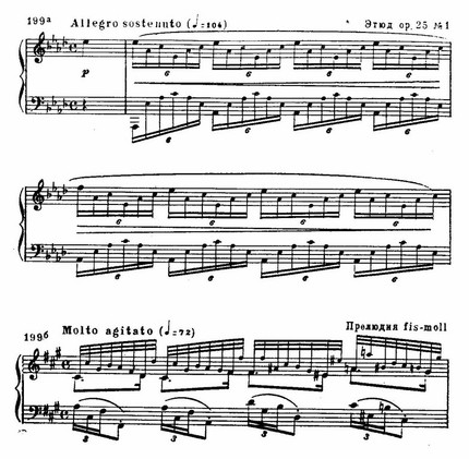 Cis-moll’ная прелюдия, эта квинтэссенция романтической мечтательности, с ее приглушенными полутонами и блуждающими импровизационными эффектами, как бы вся строится на одной только пианистической фактуре (пример 198 г).