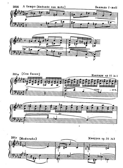 Подобные находки у Шопена неисчерпаемы. Можно указать десятки шопеновских оборотов, которые в нотной записи представляются обыденными и малооригинальными, а в фортепианном исполнении приобретают «неземную» поэтическую красоту.