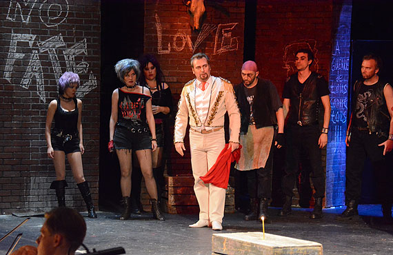 Геликоновская «Кармен» чувствовала себя на большой площадке вполне привольно, нисколько не утратив своих чар, что уже само по себе редкость для спектакля, которому почти семь лет от роду. Оркестр театра, оказавшись в просторной и глубокой оркестровой яме (чего он начисто лишен в родных стенах), лишь выиграл в своем звучании, которое под руководством Владимира Понькина было мягким и элегантным, даже не без некоторой изысканности, и в то же время достаточно ярким. Единственная проблема, что в очень уж глубокой оркестровой яме маэстро не всегда было видно со сцены, из-за чего подчас возникал небольшой разнобой в ансамблях, но это, думается, не так уж трудно отладить. Голоса солистов нисколько не терялись, хоть и не для всех эта акустика оказалась благоприятной. Пожалуй, совсем без потерь прозвучала лишь блистательная Лариса Костюк в заглавной партии. Впрочем, и Николай Дорожкин (Хозе), и Татьяна Куинджи (Микаэла), и Игорь Тарасов (Эскамильо) выглядели вполне достойно.