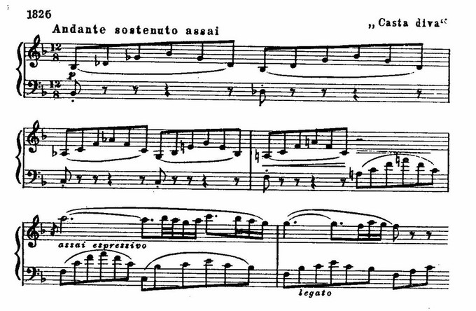 Более оригинален и последователен Беллини. Его лучшие произведения отразили, подобно операм Россини, патриотический подъем национально-освободительного движения в Италии. Следуя за парижской оперой Россини — «Вильгельмом Теллем», Беллини развил романтические элементы в итальянской муыке.