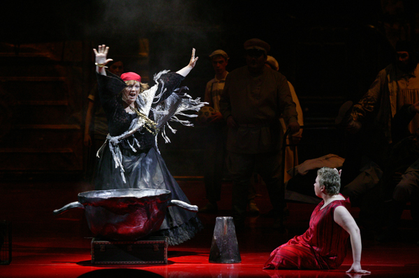 И это бы еще полбеды. Но Замбелло, как уже говорилось, помещает действие в «совдепию» — с приметами коммунального быта, партийными функционерами и чекистами. Конечно, она делает это виртуозно, но, во-первых, нашу публику уже давно перекормили всем подобным, а во-вторых и в главных — музыка сопротивляется. Особенно в финальной картине в монастыре, где противостояние режиссуры музыке приобретает особо агрессивный характер. А Инквизитор с Лубянки — это уже просто штамп, общее место.