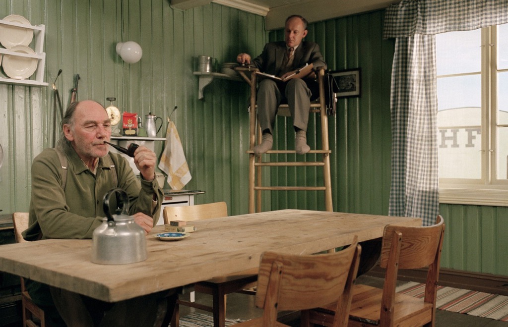 Ну что за радость жить в норвежской глуши одному, как Изак (актер — рекордсмен по исполнению ибсеновского репертуара в Норвегии Йоахим Кальмейер). На столе — одинокий чайник и скромная сухомятка. Иногда заходит сосед, работающий на тракторе. Выпьет чашку чая, попросит постричь под горшок (а вернее, под шапку), подпалить волосы в ушах. Вот и вся компания. Хоть вой на луну. Ничего иного в жизни нет. А тут вдруг наблюдатель — какой-никакой, а живой человек (шведский актер Томас Норстрем, семь лет руководивший одним из шведских театров). Почти все пары «наблюдатель — холостяк» вопреки инструкциям вступят в контакт, начнут разговаривать, а кто-то даже совместно впадет в запой. Одна моя коллега пылко произнесла после показа фразу о том, что режиссер глядит в будущее, а это — общество одиноких мужчин, да что будущее, — настоящее, взять хоть коллег киноведов — сплошь холостяки. Так кухня, вроде бы банальное местечко с кастрюлями и холодильником, становится моделью мира, в замкнутом пространстве которого нетрудно понять цену человеческих проявлений. И еще неизвестно, чья роль труднее, тем более что наблюдаемый ведет свое наблюдение за наблюдателем. Все открыто, никаких тайн и права на личную жизнь. Невероятно и абсолютно правдиво, и с такой любовью и снисхождением к человеку и его слабостям.