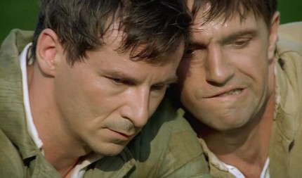 Владимиру Вдовиченкову, играющему Демина, не привыкать к характерам брутальным, мужественным. На актере хорошо сидит военная форма, и ему, как оказалось, не чужда немецкая тема (Вдовиченков вырос в Калининградской области, где соседей-немцев хватало). Его капитану некуда возвращаться, жена не дождалась героя, и теперь он опасается мирной жизни. Таким, как капитан Демин, в условиях войны легче, как ни кощунственно это звучит. И его постепенное возвращение к миру — это вынужденное сотрудничество с тем, кого он готов убить в начале пути и кого он оплакивает, потеряв.