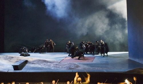 Сильные сцены достались Рамону Варгасу — Идоменею, когда он мечется из стороны в сторону, не в силах принять решение по поводу принесения собственного сына в жертву божеству. Любопытно, что в отличие от Варликовского, который в своей «Ифигении» сделал тему человеческого жертвоприношения краеугольным камнем постановки, Бонди обходит проблему как таковую, он мягко выруливает в область чувств. Колоритное лицо Варгаса, неожиданно попавшее на передний план и взятое лучом света, играет отдельную роль. Облаченный в красную тогу, трагический, почти расиновский персонаж обречен на целый акт страдания. И это не страдания государственного мужа, забывшего свой народ, но целиком страдания отца. А каким смешным Бонди выводит в финале божество, простившее царя и отменившее жертву. Отец, сын, его избранница и его формальная невеста Электра переживают такие сильные эмоции на протяжении спектакля, что официальная версия событий перестает что-либо значить как для них, так и для зрителей. Грандиозный успех режиссера в Париже, на мой взгляд. Музыкальная составляющая была самая что ни есть звездная — один Томас Хенгельброк за дирижерским пультом чего стоит.