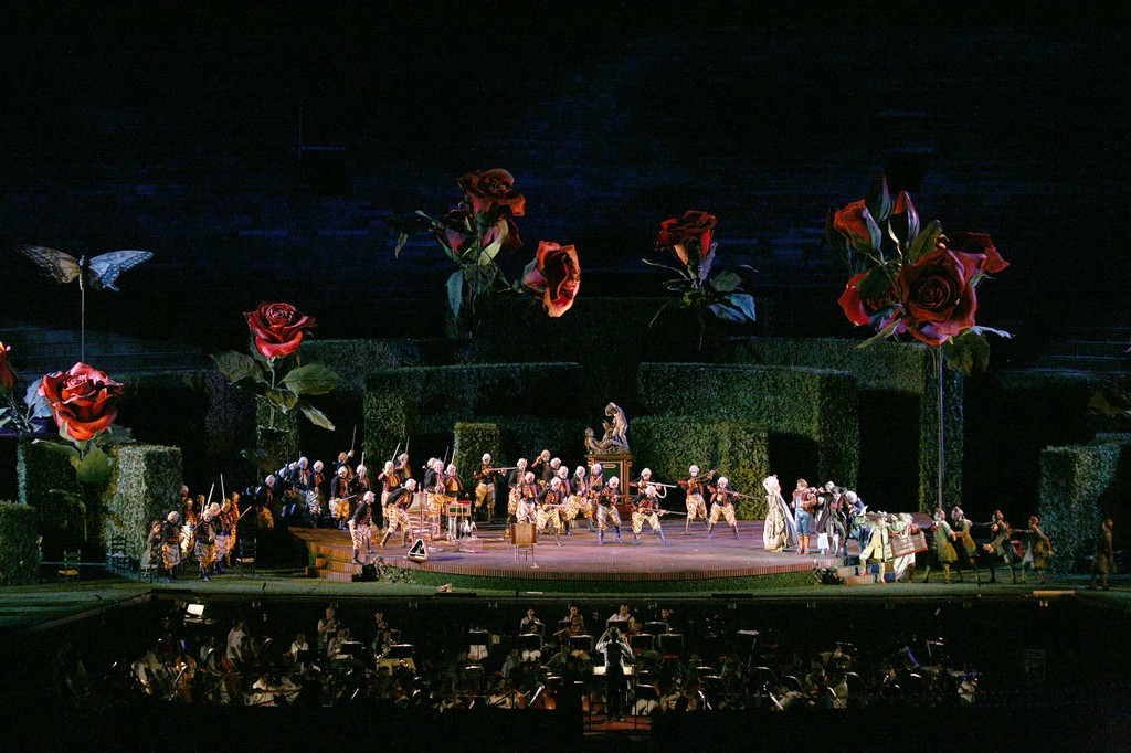 Арена ди Верона, самая знаменитая открытая площадка в мире, манит публику (преимущественно туристическую), но способна оттолкнуть знатока и критика: список названий, «подходящих» этому уникальному пространству, крайне короток, режиссеров, способных предложить оригинальные решения его освоения, еще меньше, среди певцов, подвизающихся в Арене, можно услышать как очень хороших, так и очень слабых. Так что каждый фестиваль сродни приключению.