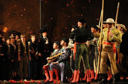 Я посмотрела два спектакля — премьеру «Гензеля и Гретель» Хумпердинка и возобновление «Кармен» в постановке шотландца Дэвида МакВикара 2002 года. Обе вещи были исключительно хороши. Начну по старшинству с МакВикара, он того заслуживает.