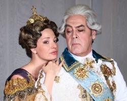 Отцы-создатели нынешнего информационного повода (ибо на событие в мире музыки данная премьера претендовать вовсе не может) рассчитали всё очень точно. Взяли за основу одну из популярнейших страниц русской истории. Расписали исторический прототип Екатерины II сразу на трех исполнительниц (в спектакле они сменяют друг друга, проходя вокальные стадии лирического сопрано, лирико-драматического сопрано и меццо-сопрано). Создали помпезно-сусальную сценографию, по большому счету вполне традиционную, а участников этого опереточно-эстрадного действа вырядили в роскошно-бутафорские костюмы «под эпоху». Теперь представьте себе ситуацию, когда вам показывают российский герб или флаг и говорят: «Вам нравится?» Ответ на этот вопрос может быть только один. Именно на это по отношению к своему детищу и рассчитывали создатели спектакля. Однако загвоздочка, тем не менее, случилась – да еще какая!
