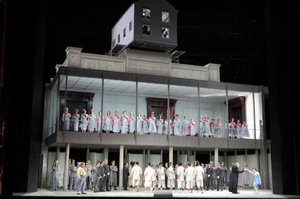 В Баварской Опере идет активная подготовка к Мюнхенскому фестивалю — вовсю репетируют «Тоску» Люка Бонди, уже возвели павильон для off-проектов на Конюшенной площади за театром, весь город обклеили афишами. И словно между делом баварцы выпустили «Медею в Коринфе» Симона Майра — очередную премьеру конца сезона, которая пройдет внутри фестивальной программы всего один раз из-за занятости всех членов постановочной команды в других спектаклях в июле — августе.