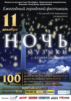 11 декабря 2010 года по инициативе Комитета по культуре пройдет «Ночь музыки в Санкт-Петербурге», в этом году она посвящена 170-летию со дня рождения П. И. Чайковского. Организаторами этого фестиваля, пропагандирующего зимний концертно-театральный сезон в Петербурге, выступили Национальный оперный центр и компания «Театр Декор».