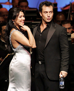 Существует и еще одна (виртуальная) сторона проведения подобного рода концертов «повышенного спроса» – от этого никуда не деться ни Петербургу, ни Москве. Навязчивая PR-раскрутка этих мероприятий каждый раз превращает академический оперный гала-концерт в событие массового музыкального шоу-бизнеса. Баснословные цены на эти престижные вечера не отпугивают лишь далекую от мира музыки «тусовочно-светскую», но зато денежную VIP-публику, в то время как для истинных меломанов выложить за билет 1500 – 2000 рублей (именно такой была официальная минимальная цена билета на обсуждаемый концерт) – при «нищенских» уровнях доходов именно той части публики, которая ходит на музыкальные концерты ради музыки – представляется просто невозможным! Надо признать, что и сама современная технология «производства оперных звезд» давно уже срослась с PR-эстетикой шоу-бизнеса. Несомненно, Анна Нетребко – человек одаренный: природа не обделила ее ни вокальными данными, ни яркой внешностью. Правда, чего ей не хватало всегда и не хватает сейчас, так это соответствующего уровня технической и стилистической выучки, того, что и составляет, собственно, культуру пения. Но эта исполнительница – еще и типичный продукт современных PR-технологий, в ходе применения которых именно творческое развитие ее карьеры на каком-то этапе просто вышло на фазу стагнации. Приобретенный певицей гламурный имидж в дальнейшем начал «незаметно для многих» – хотя не заметить это было просто невозможно – работать на звезду по типу методично набирающего свои обороты конвейера, вне зависимости от качества «выдаваемой вокальной продукции». На каком-то этапе карьеры оперная звезда начала тиражировать себя и на эстрадных подмостках – и критерии высокого академического искусства стали размываться развлекательной «попсовостью».