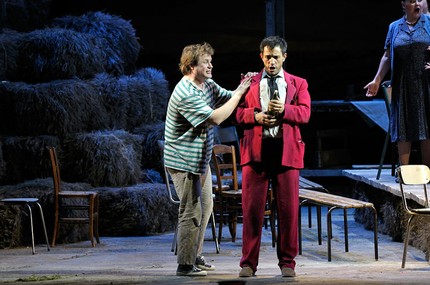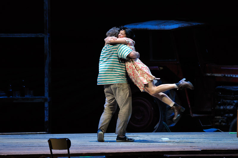 Однако Шротт давно сравнялся с Анной и по статусу, и по известности. Невероятно харизматичный, настоящий мачо, он способен украсить собою любой спектакль. И, конечно, роль лекаря-шарлатана, продающего доверчивым пейзанам склянки с простой водой, выдавая ее за универсальное лекарство от всех недугов, — как раз такая роль, в которой он мог бы блеснуть не только звучным и глубоким голосом, но и изрядно рассмешить публику. Вместе Нетребко и Шротт, вписанные в контекст вполне вменяемого и даже красивого спектакля Пелли, могли бы обеспечить безусловный успех: тем более что ансамблевые сцены они провели отлично, а Шротт попутно еще и демонстрировал замашки собственника-супруга (по жизни, не по роли), невзначай игриво прикасаясь к ножке примадонны или зацеловывая ручку до плеча.