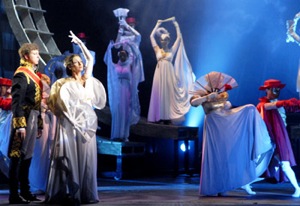 В Москве продолжается конкурсный показ спектаклей театрального фестиваля «Золотая маска-2011». Ростовский государственный музыкальный театр, неоднократный участник «Золотой маски» прошлых сезонов, в этом году привез на фестиваль два спектакля в разных номинациях – «Князь Игорь» Бородина и «Юнона и Авось» Рыбникова. Последний заявлен как претендент на звание «Лучший спектакль» в номинации «Оперетта/мюзикл», но при этом аннотируется как «опера-мистерия», исполняется в авторской оркестровой версии и с оперными солистами в главных партиях (к слову сказать, часть солистов выступала в обоих номинированных спектаклях). Что получилось из подобного кросс-жанрового эксперимента, мы и попробуем сейчас проанализировать.