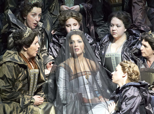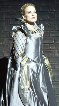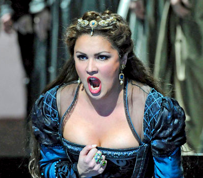 Это тот самый случай, когда русская Анна Болейн порождает псевдостиль русского бельканто: чересчур укрупняя голос, певица с большим трудом «идет наверх», что в партии подобного рода не только неприемлемо стилистически, но и очень чревато последствиями для самого голоса. Методично наполняясь красками forte, он очень неуверенно звучит «на середине», а в нижнем регистре просто входит в беззвучный вокальный ступор. Проблемы «середины и низов» особенно ощущаются в быстрых пассажах. В знаменитой арии «Al dolce guidami castel natio» финальной сцены певица неимоверно старательна, но, чтобы приблизиться к подлинной стилистке бельканто, над тончайшей кантиленой и филировкой звука ей предстоит еще много и много работать. Финальная «стретта» Анны Болейн «зацепляет» не своей вокальной составляющей, а лишь драматическим пафосом исполнительницы-актрисы, поэтому овации зрительного зала ей абсолютно гарантированы. Что ни говори, а всё-таки приятно, что наших артистов так горячо любят за рубежом: по всей видимости, патриотические чувства не угасли и у автора этих строк, несмотря даже на то, что мы живем в эпоху тотальной глобализации и всесильного артистического менеджмента, вовлекающего всё новые и новые звезды в орбиту международного оперного бизнеса. Главное – «попасть в обойму», и многим это просто не удается. Анне Нетребко удалось, поэтому, как говорится, честь ей и хвала! В этой постановке певицу окружает очень сильный состав исполнителей основных партий, и это также вызывает положительные эмоции: Генрих VIII – Ильдебрандо Д’Арканджело, Джованна (Джейн) Сеймур – Элина Гаранча, Лорд Ричард Перси – Франческо Мели, Сметон – Элизабет Кульман…