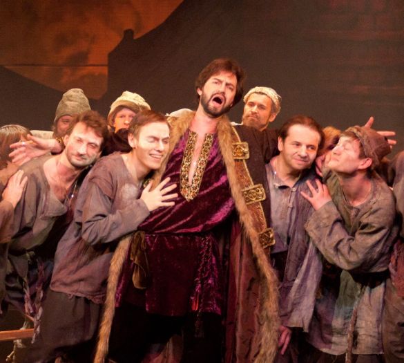 Игорь Святославич, главная трагическая фигура оперы, выведен едва ли не потешным персонажем. Еще в прологе об этом начинаешь только смутно догадываться, ибо по своему сценическому облику он напоминает нечто среднее между карикатурным Фарлафом Глинки и кичащимся своим знатным и древним происхождением Иваном Хованским Мусоргского. Но в постановке Юрия Александрова это никак не доблестный князь, никак не полководец, никак не эпический герой…