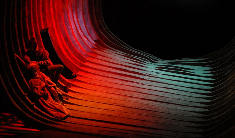Как у «настоящего» корабля-призрака – меньше всего хотелось бы ассоциировать его с «Летучим голландцем»! – есть и своя «призрачная» команда. И время от времени театральные статисты «расправляют» его парус-саван, при хорошо продуманной игре света создавая из этой воздушной субстанции различные абстрактные инсталляции, которые и рождают атмосферу той или иной сцены спектакля, в том числе и балетной: танцевальная музыка сохранена, но соответствующие эпизоды решены не в хореографическом, а визуально-постановочном сценографическом аспекте. Непринужденно осязаемая и в то же время загадочная атмосфера спектакля буквально «висит» не только на сцене, но и в каждом уголке небольшого и уютного зрительного зала. Сцена и зрительный зал превращаются в один большой корабль-флагман, который в XXI веке неспешно и явно «со знанием дела» плывет по волнам барочной оперы XVII века... Всё это невероятно просто и незатейливо! Всё это очень увлекательно и восхитительно! И эту удивительную атмосферу дарят публике француженка Жюльет Дешам (режиссер) и итальянец Бенито Леонори (сценограф). Но подобная атмосфера никогда бы не наполнилась красками жизни без потрясающих, просто изумительных костюмов итальянки Ванессы Саннино, в которых было заключено всё: и отзвуки commedia dell’arte, и дань традициям барочной оперы, и поистине вневременная эстетика философского обобщения, дизайнерские решения которой оказываются очень созвучными представлению зрителя XXI века, снисходительно воспринимающего мифологию прошлого как красивую сказку для взрослых с запутанным и бесконечным сюжетом и, возможно, даже не знающего, к какому месту на карте мира была «приписана» древняя Колхида и что Лемнос является одним из греческих островов. Кстати, уже установочные ремарки к либретто «Язона» Кавалли почему-то Колхиду, имевшую мифологическую локализацию на территории современной Грузии, упорно называли островом (l’isola del Colco) – и это еще больше запутывает ситуацию…
