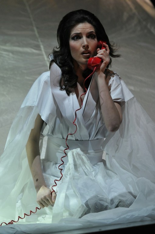 Вы скажете, всё это – случайность, и ей вообще не стоит уделять внимания. Возможно, и так. Но мудрыми философами давно подмечено, что закономерности как раз и пробивают себе дорогу в цепи случайностей. Итак, мы имеем дело с постановочной закономерностью, рожденной из набора случайностей – поистине гениальных случайностей Гоголя и Кокто… Думается, что именно поэтому в спектакле Ольги Ивановой ничего случайного нет: каждая вокальная фраза, каждая интонация певческого голоса, каждое изменение настроения в оркестре, каждое движение, каждый пластический посыл персонажа, любое искривление пространства комнаты героя, любое изменение душевного состояния героини, даже любая черточка на анимационном заднике создают особую психологическую атмосферу. Как уже было сказано, в обеих частях диптиха всё выверено по часам «с точностью до миллиметра». По этой же причине, неслучайно и то, что в продолжение всего антракта на проекционном экране в бесконечном повторе прокручивается довольно-таки странный ролик. Крупным планом – лицо девушки, кажущееся порядком изможденным и усталым. Девушка что-то вещает, но звук тих и искажен так, что в отдельные моменты, и то не сразу, вдруг начинаешь выхватываешь некие слова, из которых никак не складывается смысл. С одной стороны, невольно принимаешься ассоциировать это с продолжением гоголевской темы «социального сумасшествия» и даже «революционного протеста», только вот герой уже в женском обличии. С другой стороны, весь этот «сюрприз» антракта начинаешь расценивать как контрастную отправную точку к изысканности интерпретации всего того, что вот-вот произойдет на этой же сцене с героиней «Человеческого голоса»: сначала из гоголевского девятнадцатого века сама постановка «Записок сумасшедшего» и этот ролик скачком переносят нас в век двадцать первый, а затем мы снова делаем временной кульбит в век двадцатый… И каково же было мое удивление, когда оказалось, что антрактный видеофрагмент создан на основе одного из реальных роликов, выложенных в Интернете: в последнее время их фигурантка боится выходить из «своего домика» (или делает это крайне редко), но при этом ассоциирует себя с революционером! Вот уж воистину нестандартный режиссерский взгляд из XXI века на проблему «инакомыслия» и выражения протеста – любого, неважно даже какого! Несомненно, было бы весьма интересно узнать, что думает по поводу постановки обсуждаемого диптиха эта представительница «молодого поколения отечественных революционеров», но, увы, все усилия создателей спектакля отыскать автора этих роликов в реальности оказались совершенно безуспешными…