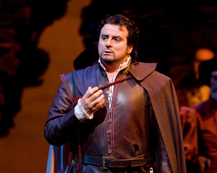 Дэвид МакВикар – один из лучших оперных режиссеров. Он действительно знает, любит музыку, понимает… У него есть великолепное чувство стиля – и за это я его очень люблю. Как мы работали? Очень просто, мы сразу нашли общий язык. У нас было, в общем-то, <взаимопонимание>… Наши мнения по поводу характера и <того>, как изобразить этот характер в опере, сходились… в основном… Так что никаких особых трудностей не было. Постановка? Она довольно традиционная. Тем более, что я считаю, что именно эту историю переносить в современное <измерение> не имеет никакого смысла. <Почему?> Потому что она потеряет всяческий смысл. Это драма шестнадцатого века. <Вся ее историческая> «прелесть» в том, конечно, <и состоит, что были> отрубания голов за измену и прочие вещи: они никаким образом не могут случиться в наше время, поэтому это всё принадлежит прошлому. Поэтому, конечно, и движение, и декламация, – всё это должно соответствовать <тому> периоду.