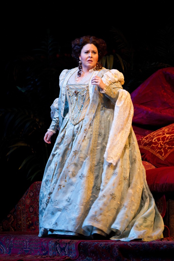 В последнем акте оперы, после недолгой идиллии любовного дуэта с Эрнани, пение Анжелы Мид в финальном терцете заставляет переживать подлинный катарсис: новые найденные певицей трагические краски уже настойчиво склоняют воспринимать ее прямо как настоящее драмсопрано. В момент наивысшего выражения отчаяния и безысходности героиня Анжелы Мид поистине прекрасна! Возможно, по ходу развития сюжетной канвы спектакля певица не всегда бывает убедительна с точки зрения актерского мастерства и в силу известной сдержанности своего природного темперамента, но с точки зрения оперного вокала, она становится главным открытием этой трансляции!