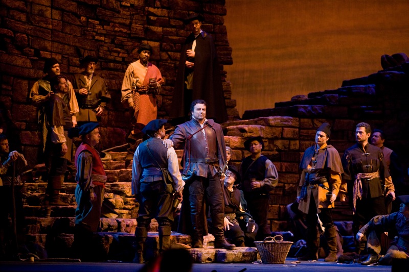 В целом, Марчелло Джордани в партии Эрнани производит достаточно неплохое впечатление, но от звучания его голоса — холодного, тембрально «выбеленного», жесткого, с пронзительными, тяжело дающимися верхами — очень быстро устаешь. После своей большой сольной картины в первом акте, в которой певец выкладывается на все сто процентов (за что, несомненно, заслуживает всяческой похвалы), кажется, что он исчерпывает себя без остатка… Кажется, что ничего нового сказать зрителю на языке оперной вокальной выразительности он уже не может: до самого финала спектакля в плане пения он остается очень зажатым и схематичным, но, правда, весьма удачно мобилизует с лихвой всё своё впечатляющее актерское мастерство.