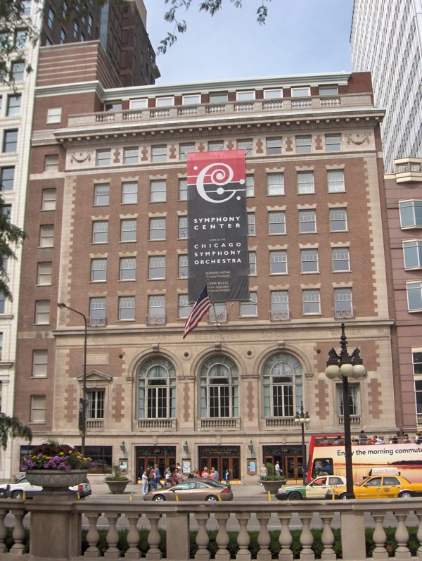 Концерт 3 марта, на котором довелось присутствовать вашему покорному слуге, проходил «у оркестра дома», то есть в том самом зале, где коллектив живет — репетирует и регулярно выступает. Чикагский «Оркестра Холл» на главной и самой красивой улице третьего по величине города США Мичиган-авеню — не слишком выдающееся терракотового кирпича здание начала прошлого века в стиле ар-нуво, что называется, пройдёшь мимо, не заметишь, тем более, что аккурат напротив стоит куда более заметное, аж о двух львах при парадной лестнице здание Арт-института, знаменитого музея с одной из лучших в мире художественных коллекций. Однако огромная растяжка с портретом Мути на фасаде всё равно привлечет ваше внимание — американцы знают, как продавать высокое искусство.