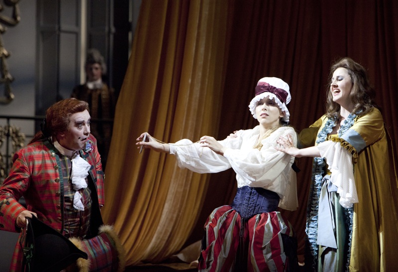 Для Любови Петровой образ Софи стал своеобразным плацдармом для демонстрации своих недюжинных вокально-сценических ресурсов. Поначалу голос Петровой кажется камерным, а слишком яркое «половозрелое» тремоло мешает сосредоточиться на хрупкости самого образа. Певица не совсем легко, но абсолютно корректно «вытягивает» непростое портаменто в роскошной по мелодийному богатству сцене вручения розы, но ультразвуковые, едва различимые верха поначалу вызывали опасение за два ключевых финальных ансамбля. Между тем, уже в дуэте с Октавианом Петрова распевается, голос раскрывается, все шероховатости и недостатки уходят, и мы слышим чудесный округлый «хрусталь», идеальную фокусировку, преображающуюся в феноменальной красоты верхние ноты заключительного дуэта. В драматическом плане певица хоть и переигрывает местами, но в целом образ выглядит более чем убедительным и, главное, удивительно искренним.