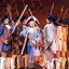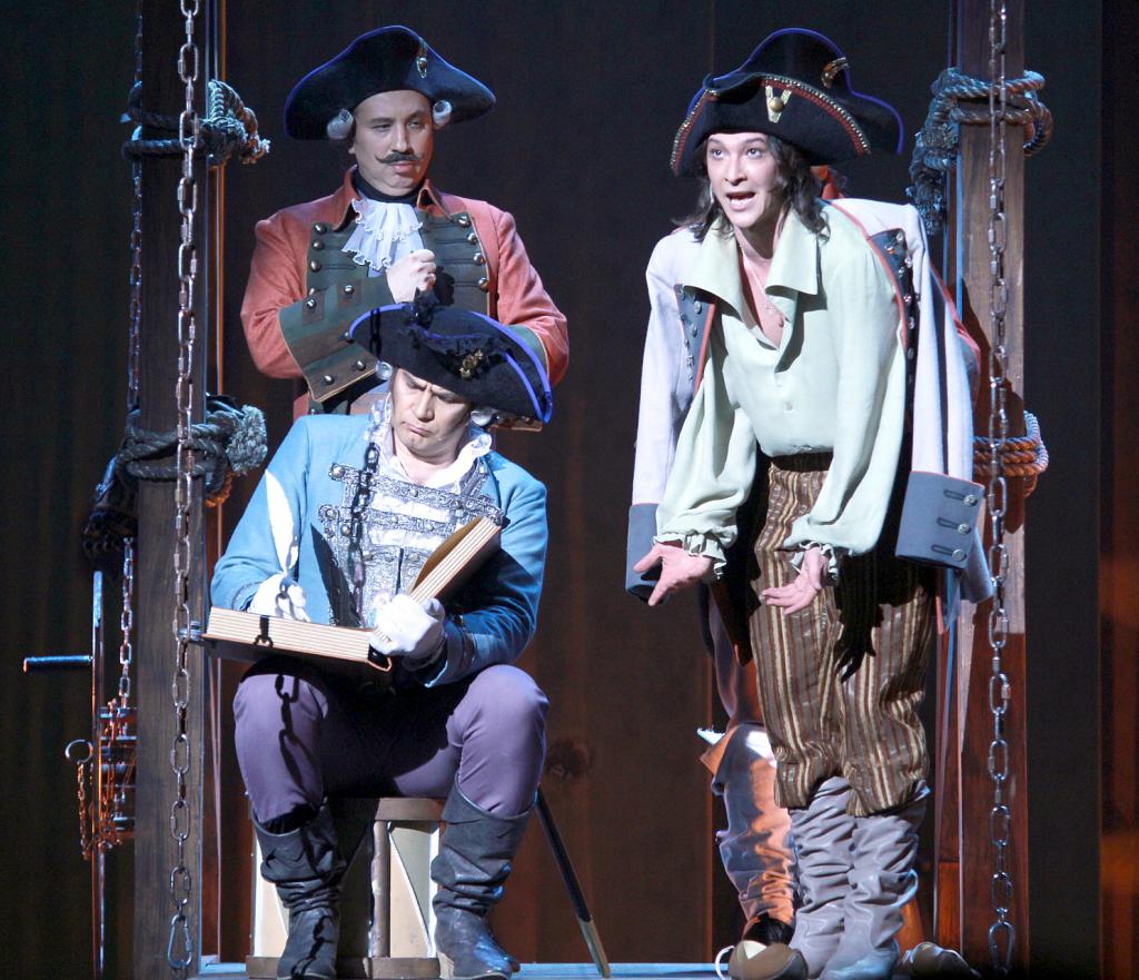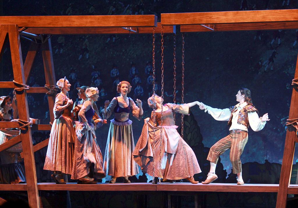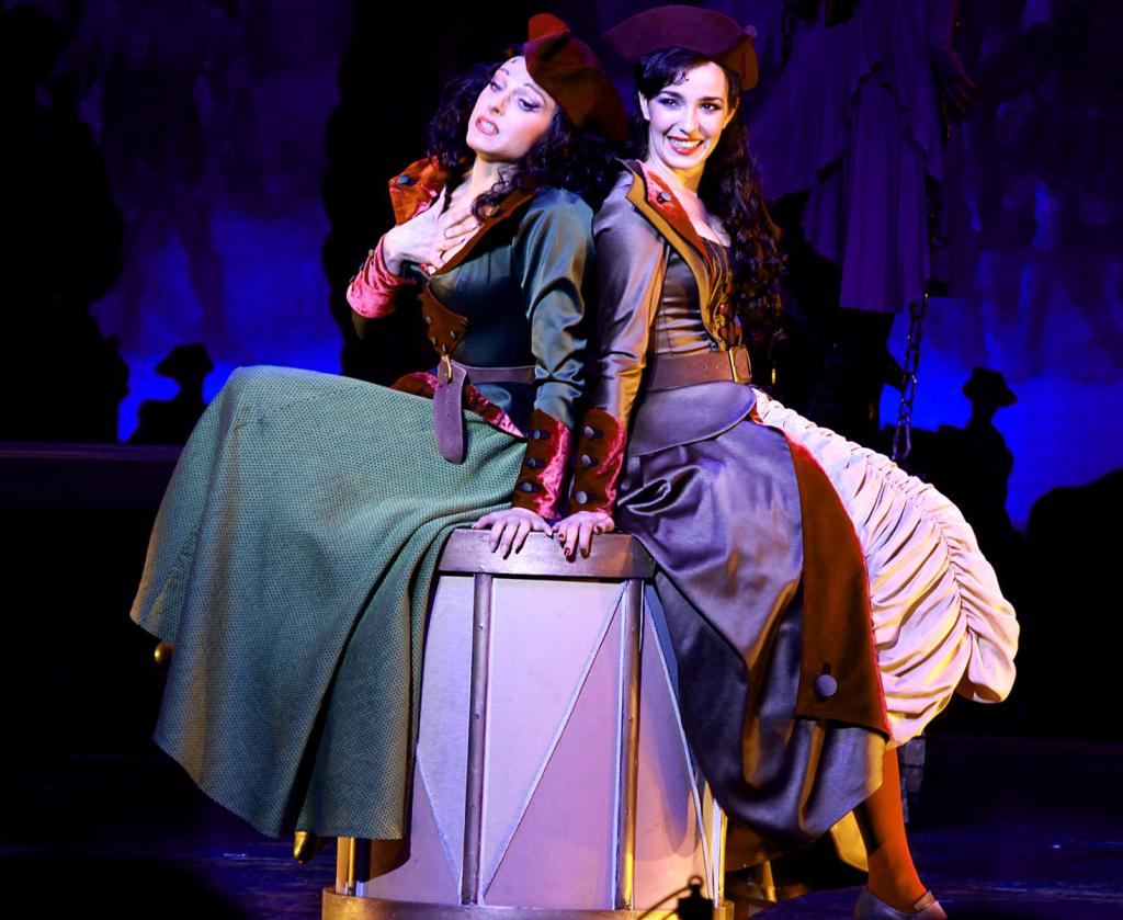 Что было скромнее? Оформление сцены и, увы, часть вокалистов. На сцене - бюджетный минимум: два сооружения, больше всего напоминающие гильотины, три дощатых «туалета типа сортир», ну и реквизит по мелочи - деревянные лошадки, картонные солдатики, корзины, флажки и шпаги.