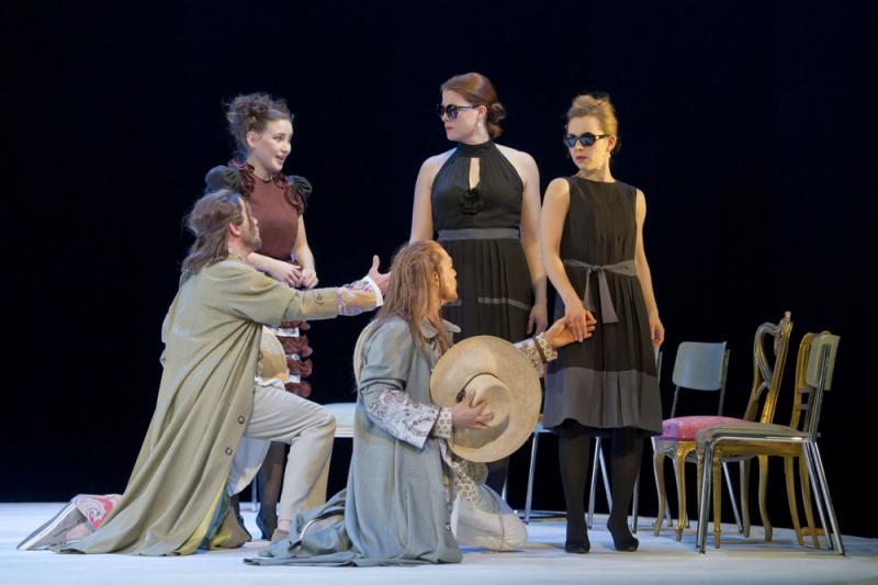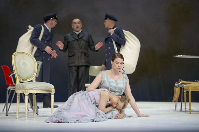 Но нас ожидает пища духовная – и итальянская опера вполне может рассматриваться в качестве весьма изысканного музыкального деликатеса, тем более, что в данном случае речь идет о необычайно эстетствующем сочинении Моцарта под титлом «Так поступают все»… И вопрос «Кто так поступает?», конечно же, не вопрос: итальянское слово tutte однозначно указывает на представительниц прекрасной половины человечества! Однако весьма примечательным, даже знаковым, на этот раз становится то, что женщина берет в свои руки и бразды музыкального руководства спектаклем. Юдит Кубиц за дирижерским пультом ведет свой оркестр очень мягко, очень деликатно, очень «по-женски» в располагающем смысле этого слова, так что под очарование поистине опьяняющей филигранно-отточенной «оркестровой нежности» подпадаешь с первых же тактов. При этом на сцене, несмотря на всю опереточность фабулы с переодеваниями персонажей и «неузнаваниями» друг друга, страсти кипят вовсе не шуточные. Парадокс, но эта двухактная dramma giocoso на либретто Да Понте оказывается на поверку очень даже серьезной. Боль, страдания и муки ревности двух главных мужских персонажей, Гульельмо и Феррандо, являющихся друзьями и в своем «дружеском» свинге с собственными женами зашедших слишком далеко, предстают очень даже реальными и пронзительно драматичными – и это при всём том, что поверить всерьез в предложенную либреттистом сюжетную коллизию решительно невозможно.