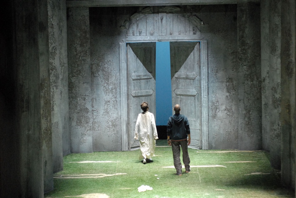 Успех премьеры, конечно же, полноправно разделяет с композитором испанский дирижер и maestro concertatore Жорди Бернáсер, в вéдении которого оказывается камерный ансамбль из состава Интернационального оркестра Италии. Режиссер-постановщик спектакля — Роберто Реккья, сценограф и художник по костюмам — Бенито Леонори, уже знакомый нам как сценограф «Орфея». Но в отличие от «белого спектакля» по барочной опере, «Нур» — постановка, реалистичное измерение которой выдержано в абстрактной стилистике мрачно серых тонов, а в ее параллельный мистический план время от времени вторгаются визуальные «цветовые пятна». На мой взгляд, при всей скромности постановочного антуража, спектакль и режиссерски, и сценографически, и в отношении костюмов решен весьма интересно и увлекательно.