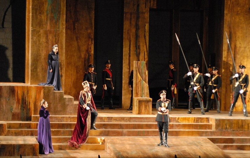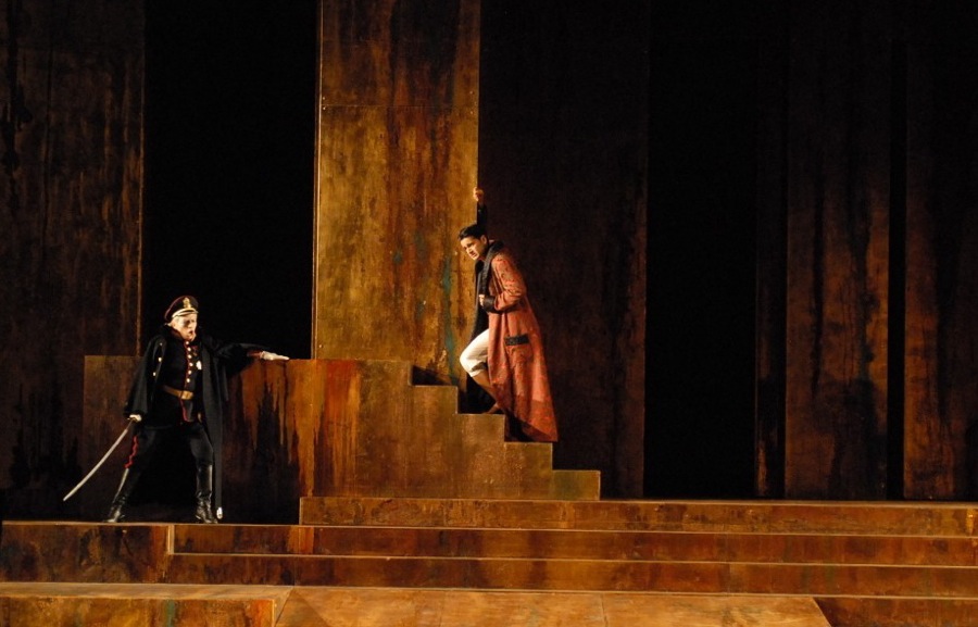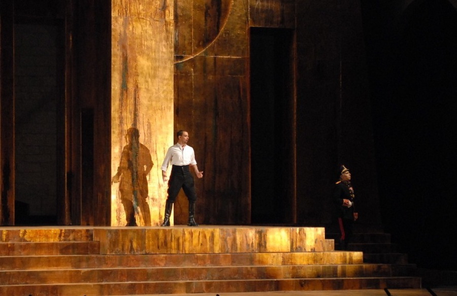 а это, как говорится, уже немалая гарантия качества: впервые с творчеством этого мастера я встретился на постановке вердиевских «Разбойников» на сцене неаполитанского театра «Сан-Карло»: тогда я был просто поражен и ошеломлен неожиданной смелостью ее экспериментальных, но весьма созвучных духу музыки Верди постановочных решений. На этот раз творческое трио собралось в том же составе: в него снова вошли сценограф Алессандро Камера и художник по костюмам Андреа Виотти.
