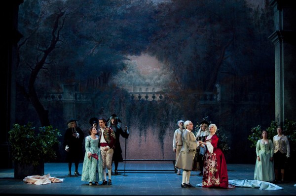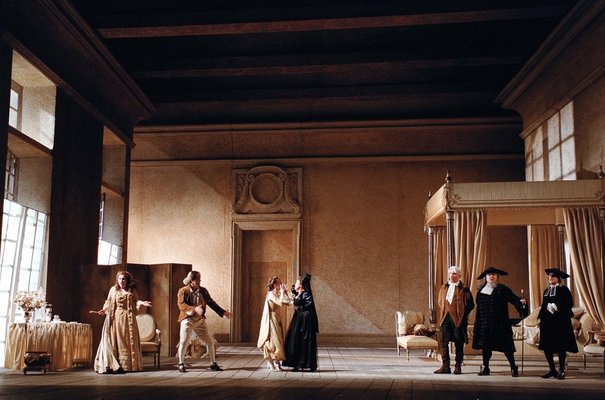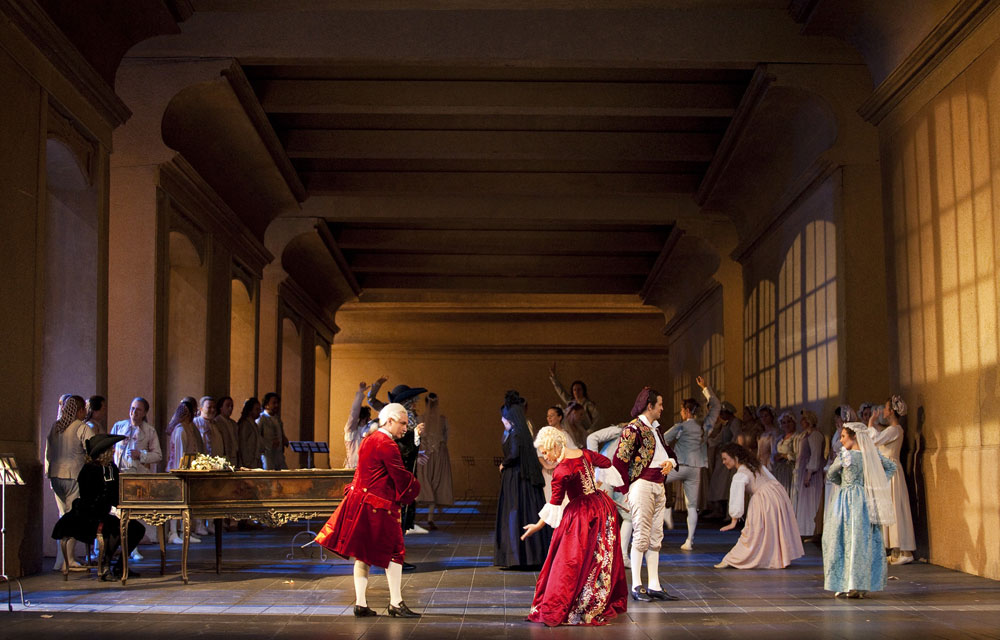 Постановка оперы Моцарта «Свадьба Фигаро», которую можно послушать в этом октябре в Опере Бастилии в Париже (режиссёр Хумберт Камерло, сценография Эцио Фриджерио, костюмы Эцио Фриджерио и Франки Скуарчиапино), обрадовала уже тем, что сцена была обставлена декорациями, умеренно приближенными к стилю эпохи, и действующие лица были соответственно же одеты. Нынешнему напуганному оперному слушателю теперь всегда приходиться опасаться, что вдруг, скажем, Бартоло выбежит на сцену на четвереньках и голым, или Керубино, отправляясь в армию, наденет эсэсовскую фуражку, или всё действие будет происходить во мраке, на складе отработанных деталей космических «шатлов»...