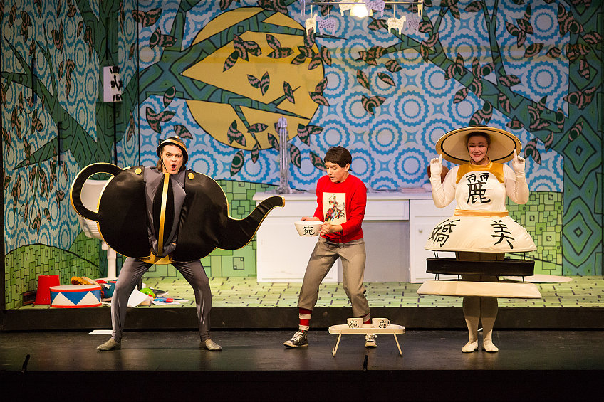 Молодой режиссер Екатерина Василёва — последнее время она нарасхват во многих проектах («Открытая сцена», «Опергруппа», Камерный театр им. Покровского) — сочинила спектакль для детей на либретто в русском переводе. Перевод этот, судя по всему, кочует по театрам. Им уже воспользовались в Театре им. Сац, не исключено, что он пригодится и для грядущей январской постановки в Большом. Не то чтобы в самом этом факте было что-то плохое — в конце концов, мы располагаем поистине драгоценной традицией русских музыкальных переводов. Но когда Мама посреди икеевского интерьера с компьютерным креслом сердится, что мальчик залил чернилами ковер; оживший электрический Светильник (вместо оригинального Огня) бранит шалуна за то, что тот разбросал спички, а Летучая мышь поет про каких-то осиротевших птенцов (вместо мышат), воспринимается все это не как режиссерские находки, а скорее как некий курьез, недогляд литредактора.