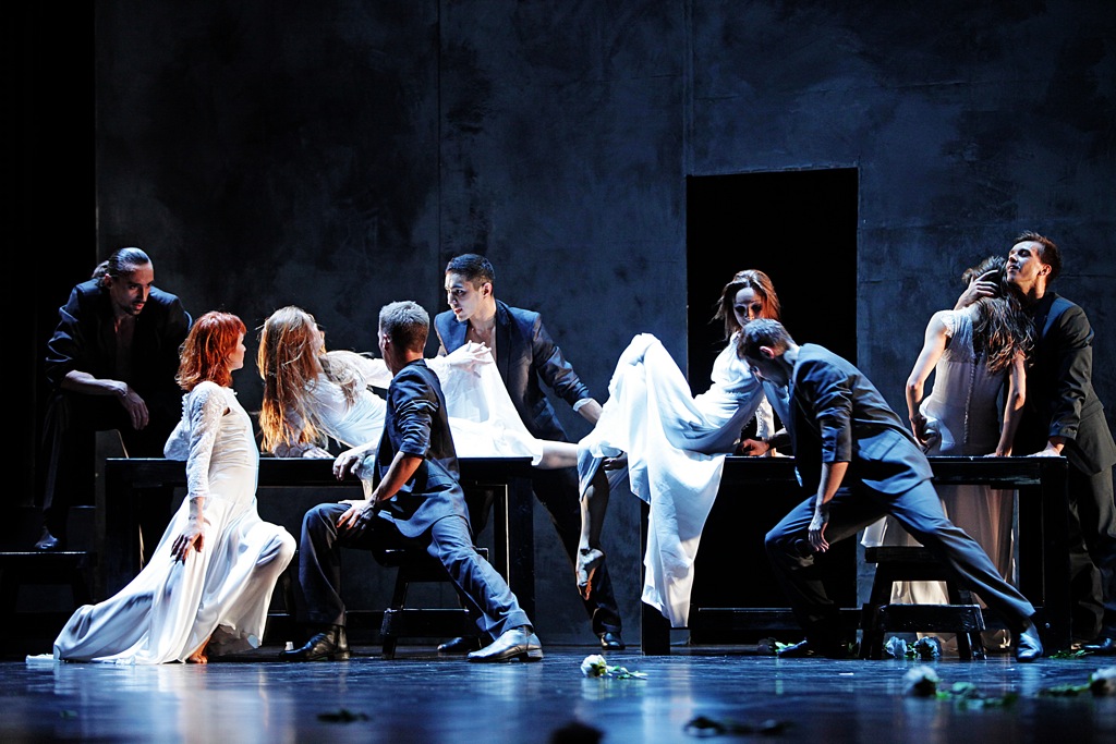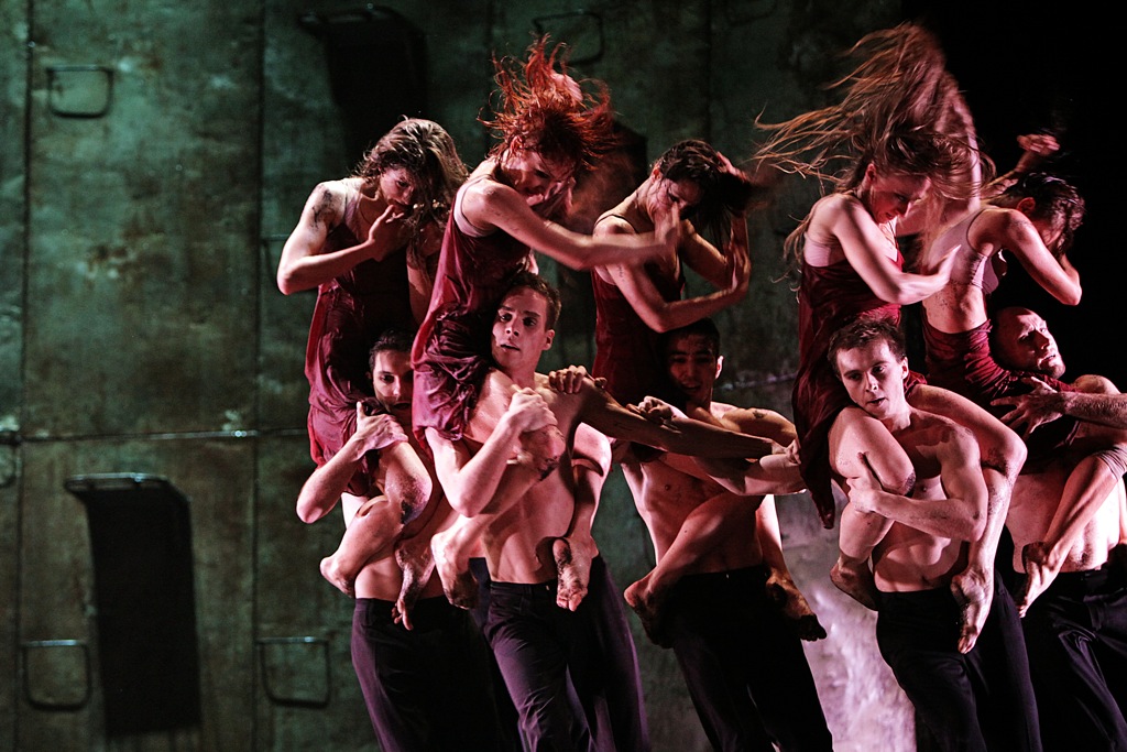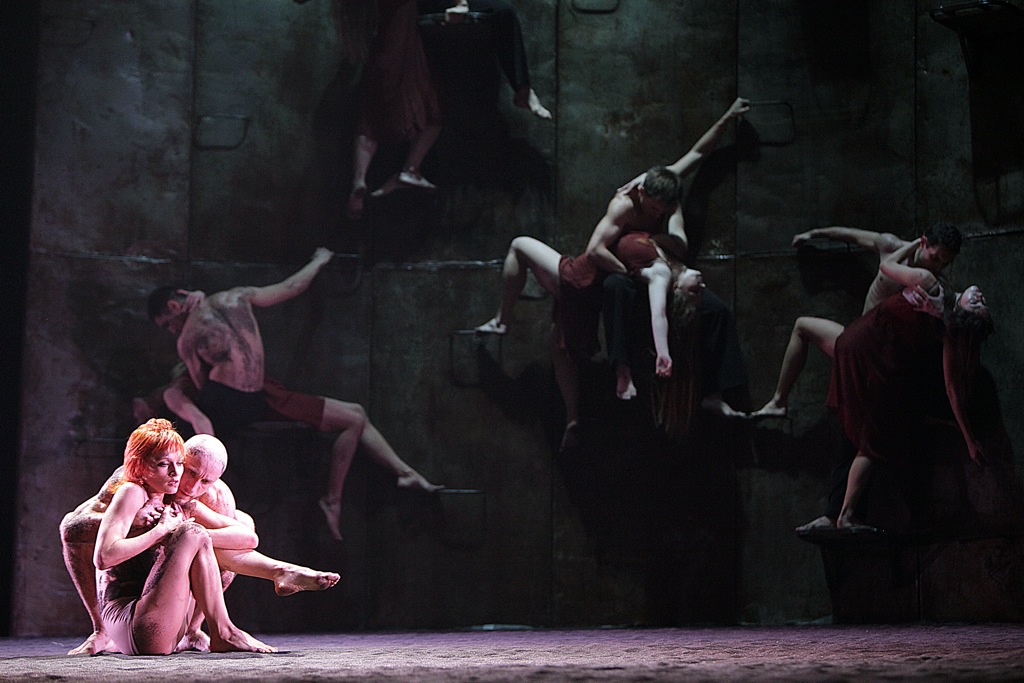Довольно страшная штука, вызывающая ассоциации с Берлинской стеной, воротами в какой-нибудь концлагерь, Стеной плача. Перед ней в диком плясе мечутся, раскидывая во все стороны серый песок, которым засыпана сцена, разгоряченные юноши и девушки. Сначала кажется, что стена преградила им путь в светлое будущее, что они посажены в клетку, унижены, уничтожены. Но время идет, а молодежь не унывает — стена не является причиной их волнения и не провоцирует депрессию, наоборот, на стене можно спрятаться, повисеть, посидеть, насладиться коллективным бессознательным, «складываясь» в красивую фреску. Фрески выкладываются разные — как стеклышки в калейдоскопе. Обадиа мудро режиссирует свет, опять же по законам кино, а не театра, помня о формате кадра и черной коробке кинозала. Он находит в партитуре паузы и делает свои красивые «стоп-кадры».