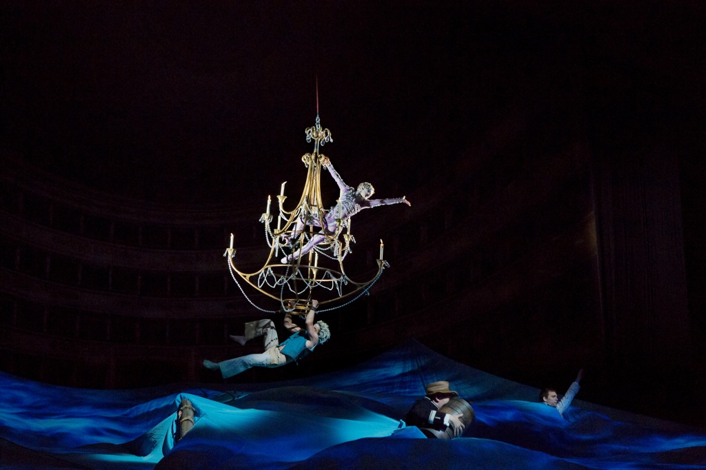 Для «Бури», экзистенциальной сказки для взрослых, если хотите, даже философской притчи в силе fantasy, абстрактные, правда, достаточно занятные постановочные картинки Лепажа, так и остаются лишь детскими веселыми картинками, атмосферу которых вместе с режиссером создают сценограф Жасмин Катудаль, художник по костюмам Ким Баррет, художник по свету Мишель Болье и художник видеоинсталляций Давид Леклерк. А вот слова самого режиссера, почерпнутые из официального пресс-релиза: «“Буря” – удивительное, очень изысканное произведение, и эта опера сохраняет всё очарование последней пьесы Шекспира. Она словно ларец, полный волшебных фокусов, настоящий подарок для меня и художников». Со второй частью утверждения согласиться легко, однако насчет того, что опера, а тем более ее постановка, «сохраняет всё очарование последней пьесы Шекспира», это явно от лукавого.