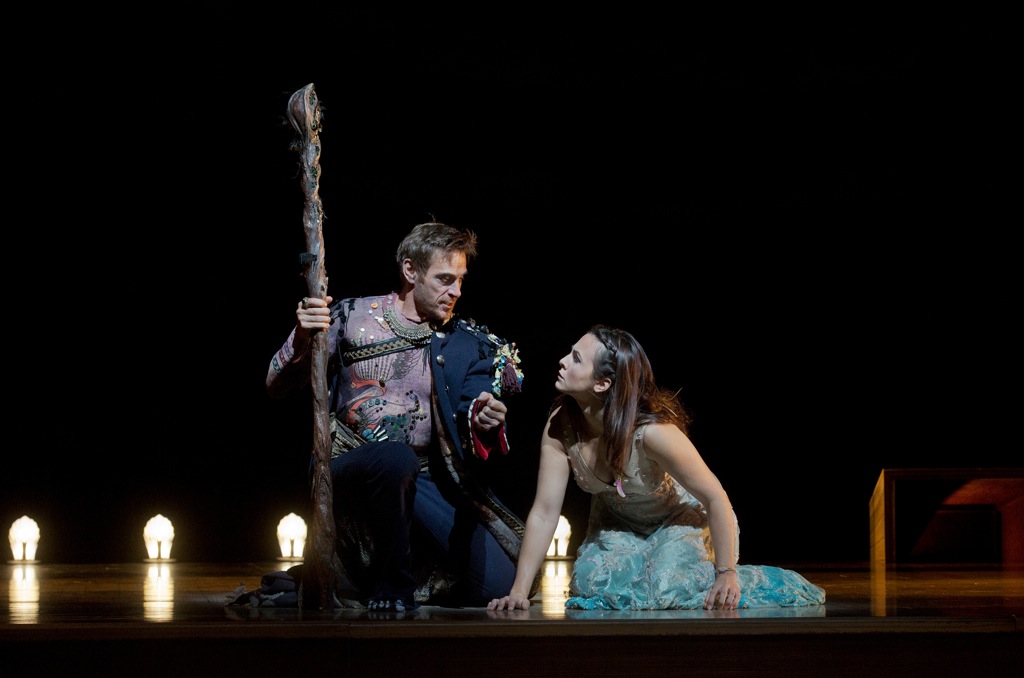 Исполнителя главной партии Саймона Кинлисайда мы уже назвали: она написана для высокого (лирического) баритона. Назовем и остальных: лирико-колоратурное сопрано Одри Луна – Ариэль; меццо-сопрано Изабель Леонард – Миранда; тенор Алек Шрадер – Фердинанд; тенор Уильям Бёрден – Неаполитанский король; тенор Тоби Спенс – Антонио; контратенор Йестин Дэвис – королевский шут Тринкуло; тенор Алан Ок – Калибан, дикарь, чудовище в услужении у Просперо. Для оперы – персонажей слишком много, но ведь перечислены еще не все: почему-то сведений об исполнителях трех оставшихся партий бас-баритонового цеха – Себастьяна, Гонзало и Стефано (брата, советника и дворецкого Неаполитанского короля соответственно) – нет ни в programma di sala, ни на сайте «Meт». Странно, ведь у Шекспира и эти персонажи важны не менее самого Просперо или Ариэля…