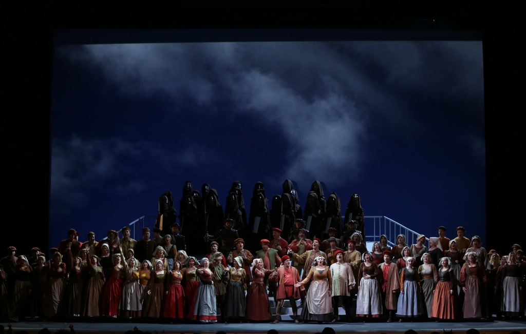 Откровенно слабая постановка, режиссер, страдающий отсутствием ярких идей, и не вполне оптимальный кастинг. Но даже при этом спектакль мог бы вытянуть пламенно звучащий оркестр, и волевой дирижер. За пультом стоял Валерий Гергиев. «Моденская» редакция оперы ему была внове — в театре долгие годы шла «миланская» редакция в четырех актах. Однако можно было ожидать, что маэстро, как водится, воспламенит оркестр, воодушевит певцов, придаст исполнению страстность, музыкально скроет, смягчит недостатки режиссуры. Этого, увы, не произошло: