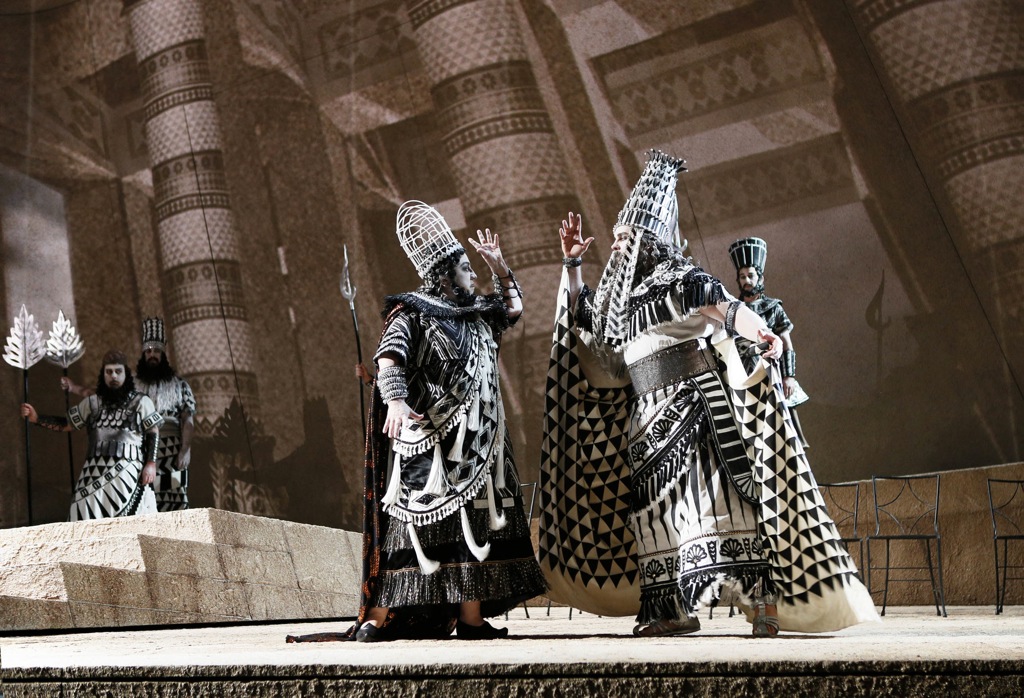 В образе Амиры Джессика Прэтт, новоиспеченная звезда бельканто международной волны, «стальные трели» своего голоса демонстрировала гораздо органичнее и убедительнее тех децибел, что в рамках фестиваля обрушивала в зал на сольном концерте. Среди его слушателей был и автор этих строк: зал неистовствовал, а я искренне не понимал, в чем причина. На спектакле же, в контексте режиссерского подхода, трактовку роли певицей, в целом, принять было существенно легче. В остальных партиях в положительном смысле остается лишь отметить Кармен Ромеу (Арджене), Мирко Палацци (Замбри), Роберта Макферсона (Арбаче) и Раффаэле Костантини (пророк Даниил).