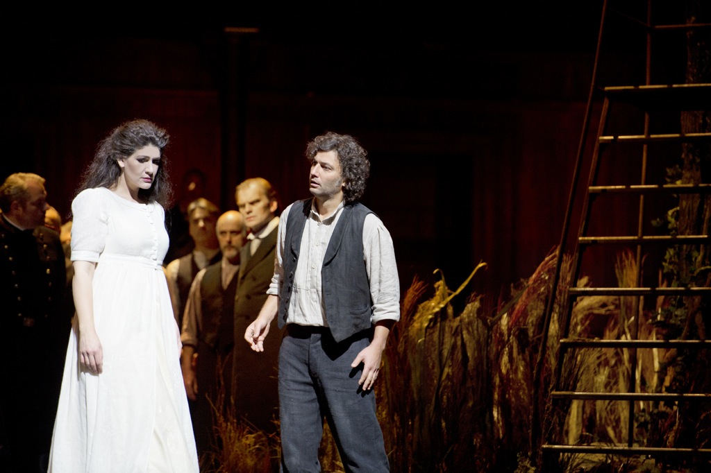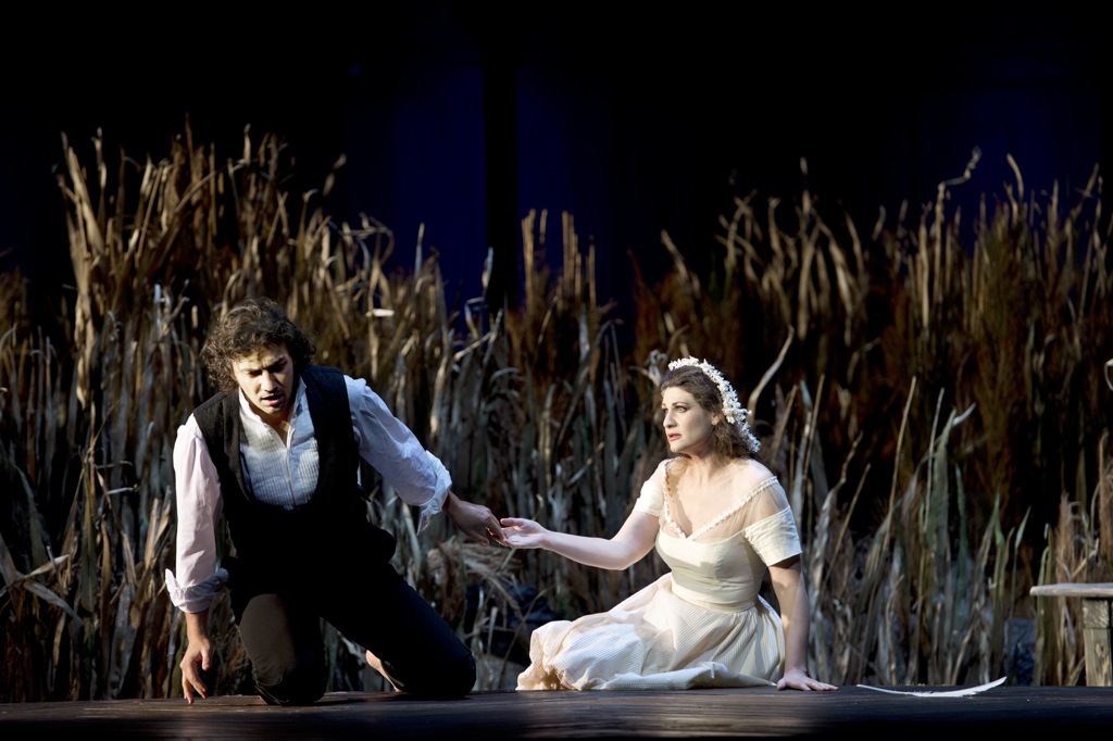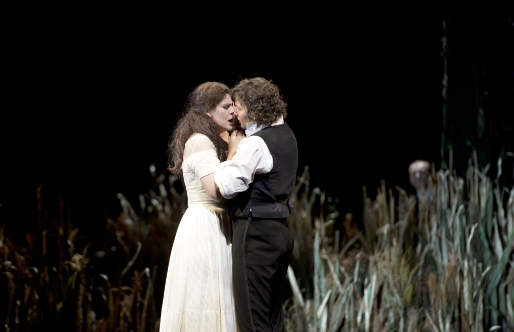 Потрясающий момент в финале оперы, когда Эльза в спальне — перенесенной Гутом в чеховский пейзаж с сеном, камышами и березами — задает таки роковой вопрос Лоэнгрину о его происхождении. Она спрашивает довольно злобно и с исступлением этого прекрасного, придуманного ею мужчину, а он не отвечает, уклоняется. Потому что она спрашивает на самом деле саму себя.