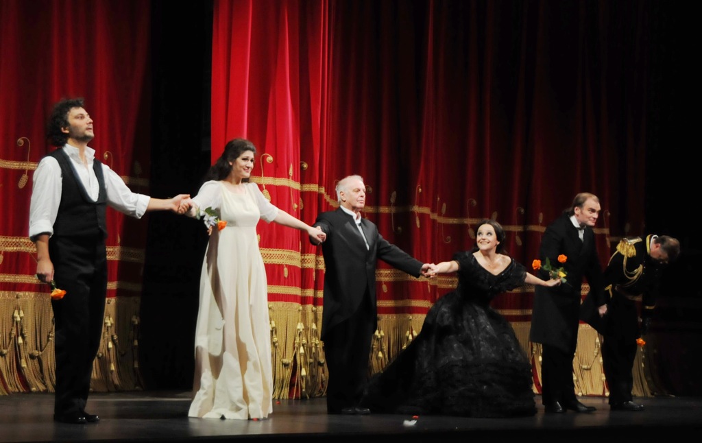 Накануне премьеры заболела немецкая дива Аня Хартерос, на которую делалась роль. Чуть позже, спев генеральную репетицию для детей (это такая принятая в Милане форма открытой «генералки»), «слегла» датчанка Анн Петерсен. Но у Баренбойма остался в Берлине неприкосновенный запас — Аннетте Даш, у которой был выходной между премьерными спектаклями «Мнимой садовницы» Моцарта, где она солировала в подопечной маэстро Штаатсопер «Унтер ден Линден».