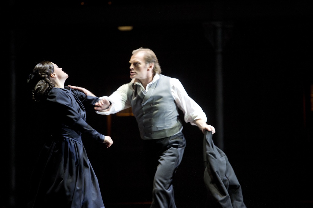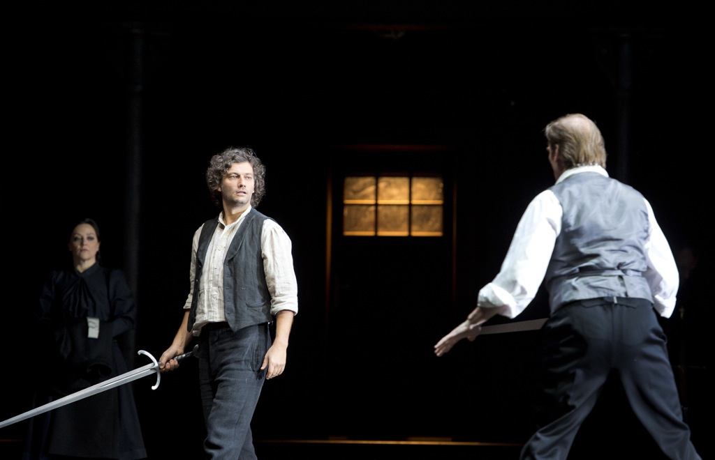 с аркадами во внутреннем дворе, где каждому хористу-брабантцу выделен квадратик, и старорусские поместья чеховских пьес с ностальгическими деревянными помостами возле водоема для Нины и Кости, и декорации фильмов Тарковского. Исключительно прекрасны оформление Кристиана Шмидта и свет Олафа Винтера.
