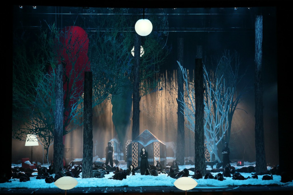 притягивали внимание различные электрифицированные конструкции — силуэты деревьев, чукотские чумы (которые оформляли «вечеринку с танцами в национальном стиле» после антракта) и пр. В общем-то, на сцене было что порассматривать в моменты, когда звук плохо слышен или неразборчив (а такое, увы, случалось не один раз), но общее впечатление оставалось гнетущее.
