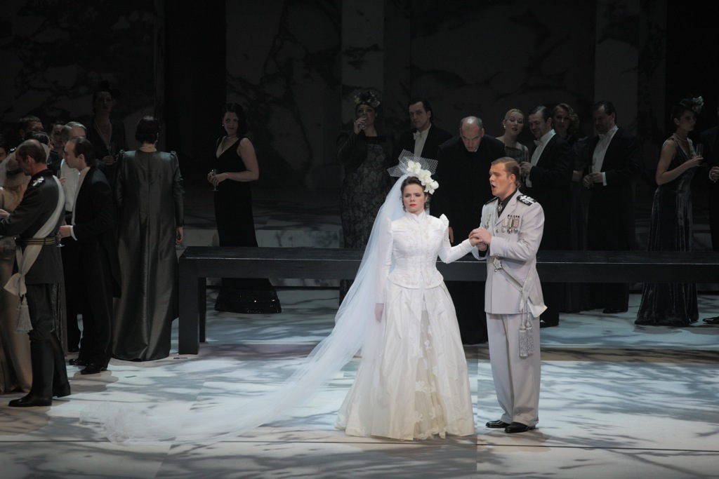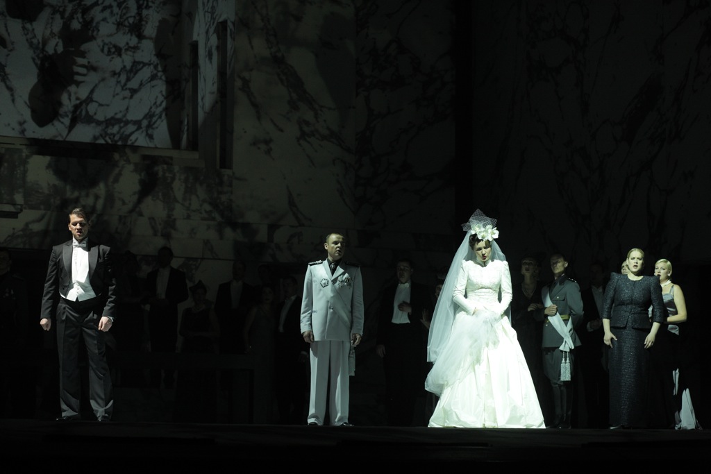 Ведь сэр Артур появляется на своей роковой свадьбе с Лючией в кителе правительственного чиновника гитлеровской администрации. Этот антифашистский посыл закрепляется пальбой из пистолета, сопровождающей исполнение знаменитой каденции, в финале которой Лючия шальной пулей убивает начальника охраны Норманна.