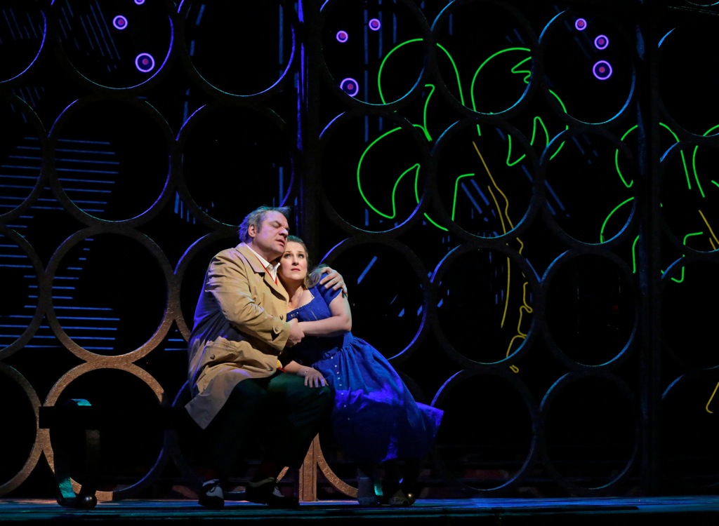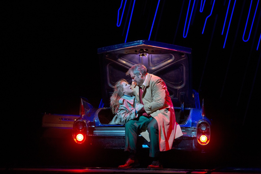 Обратитесь к либретто Пьяве — ничего подобного там, конечно же, нет. Зато теперь в спектакле прислужники Герцога «эффектно» убивают Монтероне выстрелом в голову прямо на сцене, Риголетто знакомится со Спарафучиле за стойкой бара опустевшего казино, жилище наемного убийцы оказывается клубным притоном на окраине (эротические танцы на шесте — это то, что просто необходимо сюжету «Риголетто»!), а мешок с еще живым «трупом» Джильды, безрассудно отдавшей себя на заклание во имя любви к своему губителю, оказывается в багажнике машины, где бедняжка картинно умирает под стоны безутешного отца.