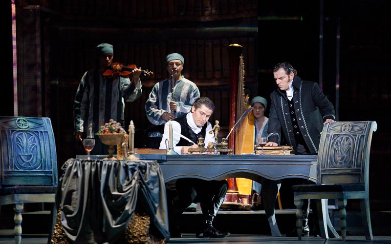 В новой огранке, приданной этому персонажу, и состоит основное привнесение Панджавидзе. На образ Скарпиа, с нашей точки зрения, работает и сценография Александра Костюченко.