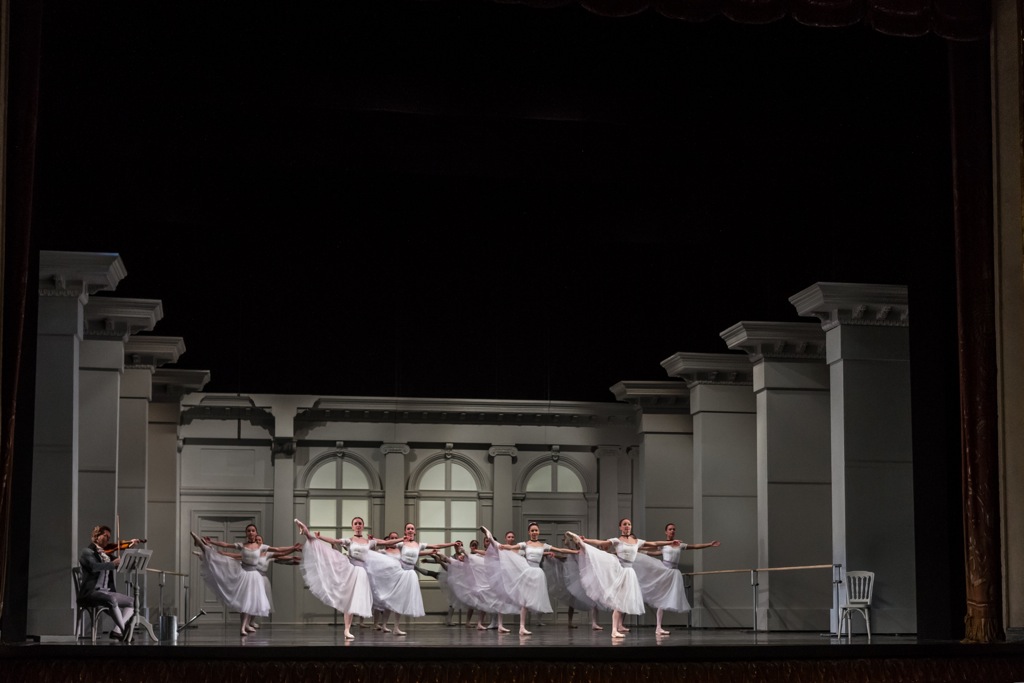 Из «Консерватории», сочиненной Бурнонвилем в 1848-м, взяли самую вкусную часть — дивертисмент в балетном классе. Под тихий шелест нот партитуры Х. С. Паулли (А. Бурнонвиль, будучи человеком очень музыкальным, работал, как и Ф. Тальони, только с театральными композиторами первого ряда) томные примы и «танцующий учитель» соревнуются в балетном классе в виртуозности, костюмированный скрипач в уголке залы правдоподобно «фальшивит», аккомпанируя «под ноги», и так далее в духе балетных зарисовок Э. Дега.